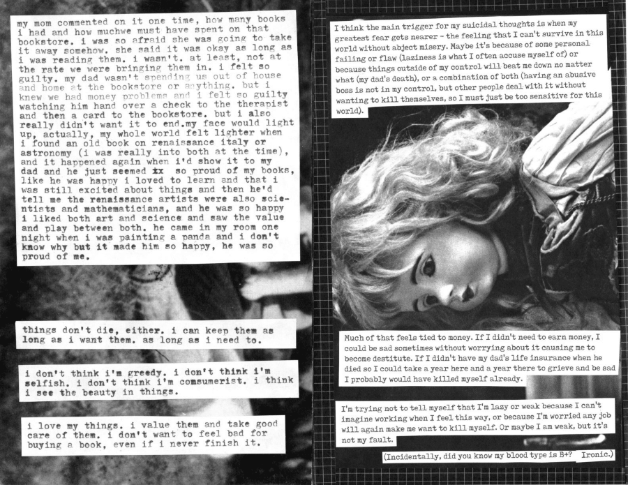 Issue 6 includes raw feelings on money and my deservedness (or lack) of it, thoughts on selfishness, a talk with my deceased father, reasons to live, and many many high expectations of myself.